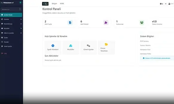 Sitenizi kendiniz yönetebileceğiniz bir panel verilir. Metin, görsel ve sayfa güncellemelerini siz yaparsınız. Yönetim Paneli Videosunu İzle ▶